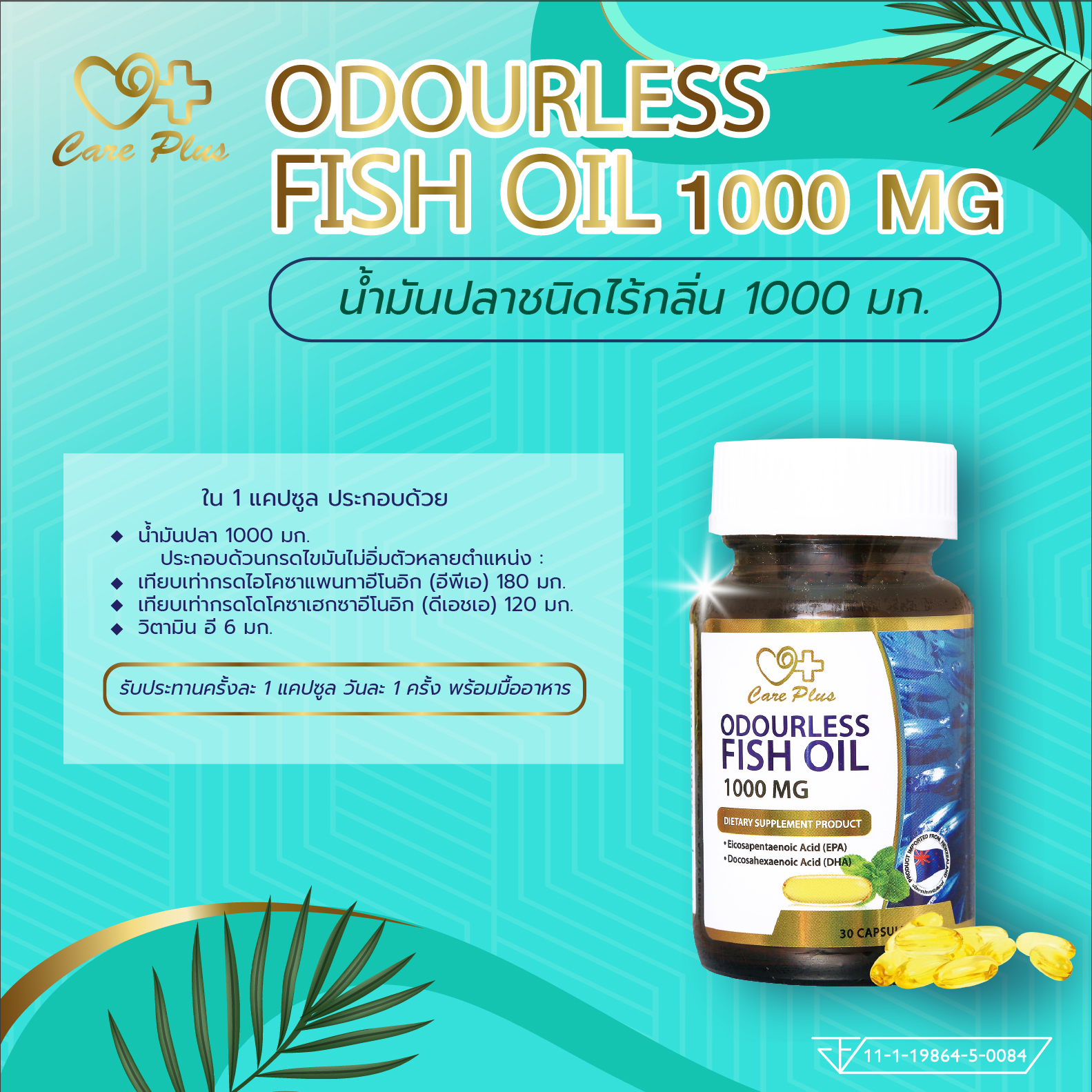 น้ำมันปลาชนิดไร้กลิ่น 1000 มก.